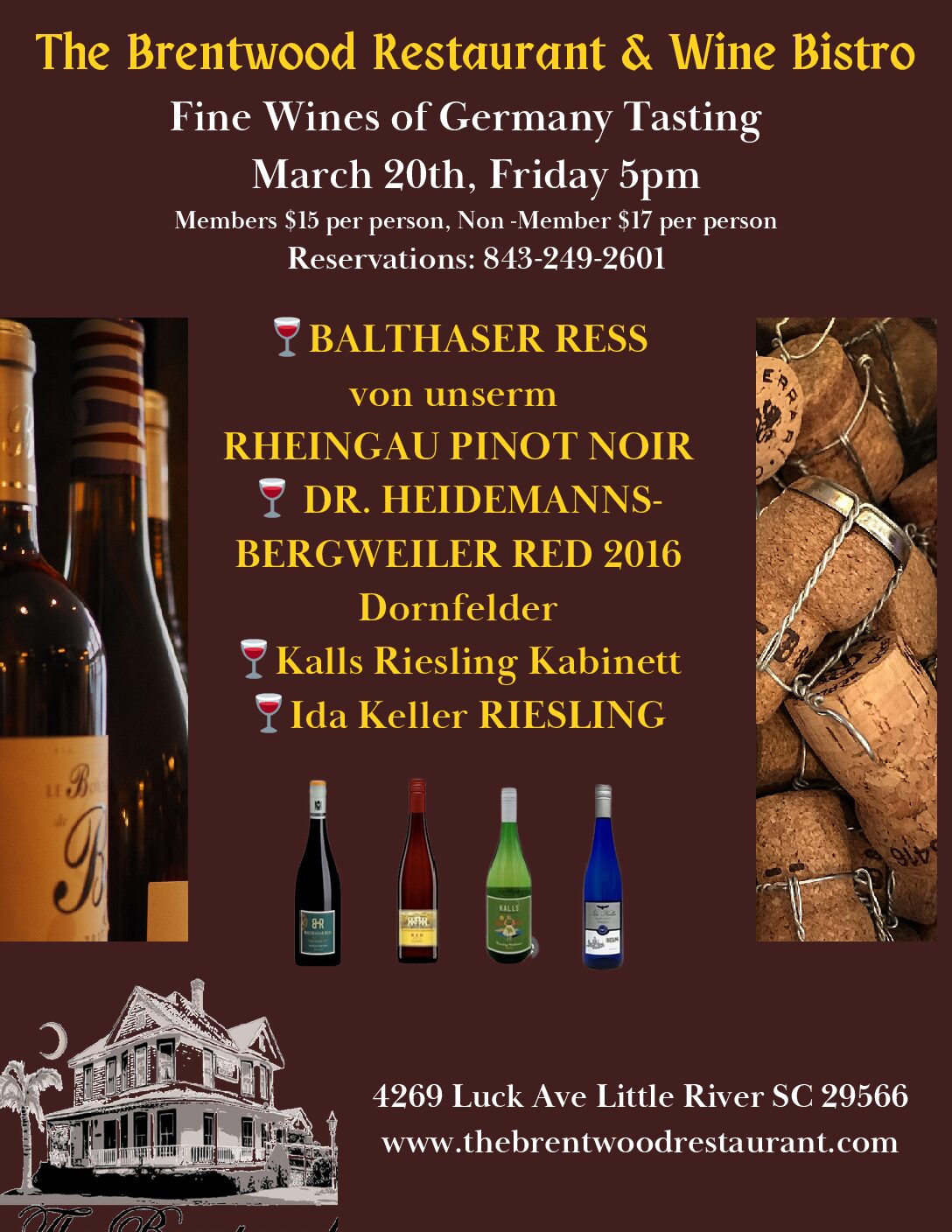 Every Friday there is a Wine Tasting at The Brentwood. Ask your server for details.